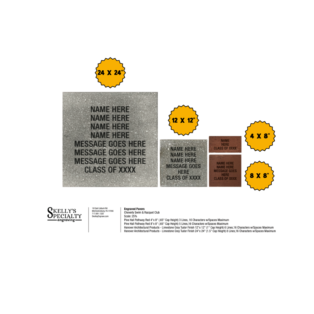 Shop Categories: All Shirts Custom Bricks All | Shirts | Custom Bricks | 4 x 8" Pine Hall Brick Paver $100.00 8 x 8" Pine Hall Brick Paver $250.00 12 x 12" Hanover Tudor Finish Paver $500.00 24 x 24" Hanover Tudor Finish Paver $1,000.00 CSRC Adult T-Shirt $20.00 CSRC Youth Size T-Shirt $15.00